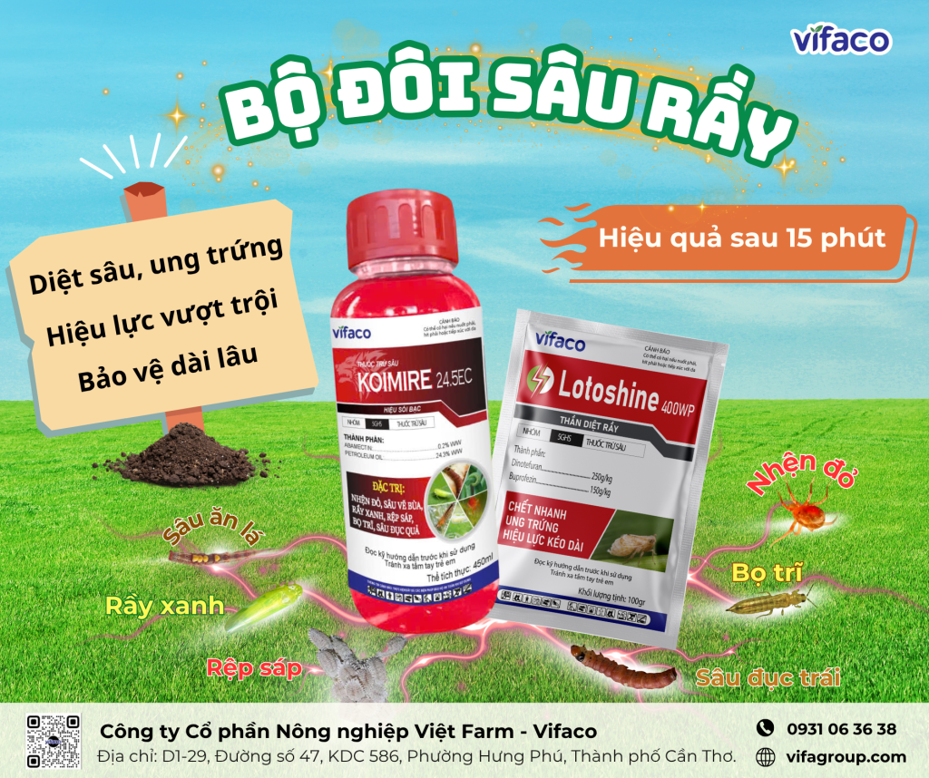Sản phẩm tham khảo: Bộ đôi sâu rầy LOTOSHINE 400WP + KOIMIRE 24.5EC